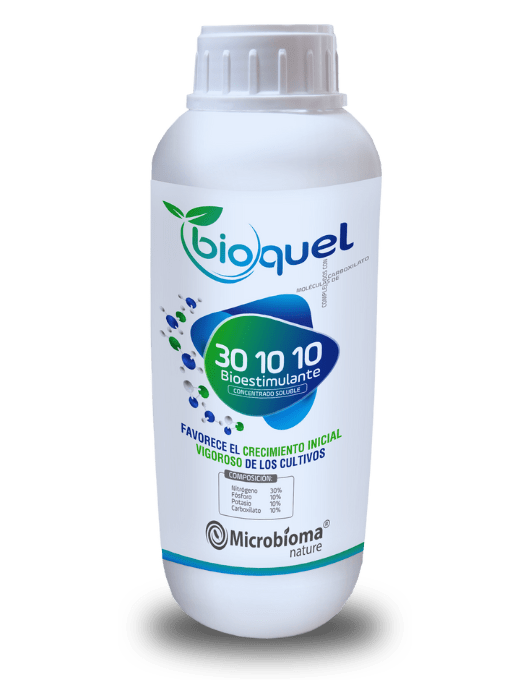 BIOQUEL 30 10 10 es un bioestimulante concentrado en nitrógeno, balanceado con fósforo y potasio, diseñado para obtener crecimientos rápidos en las primeras fases del cultivo que presentan desbalance nutricional, logrando una recuperación rápida ante cualquier tipo de estrés, como resultado obtendremos un incremento en calidad y rendimiento durante las cosechas.