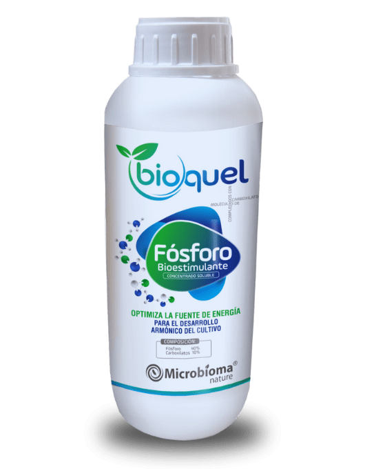 BIOQUEL FÓSFORO, es un bioestimulante con alta concentración de fósforo, el cual al ser aplicado se transporta rápidamente dentro de la planta. Esto es posible ya que el nutriente de encuentra complejado con una molécula de bajo peso molecular (carboxilato). Esta molécula es de mayor asimilación por el cultivo lo que permite un mejor crecimiento vegetativo.