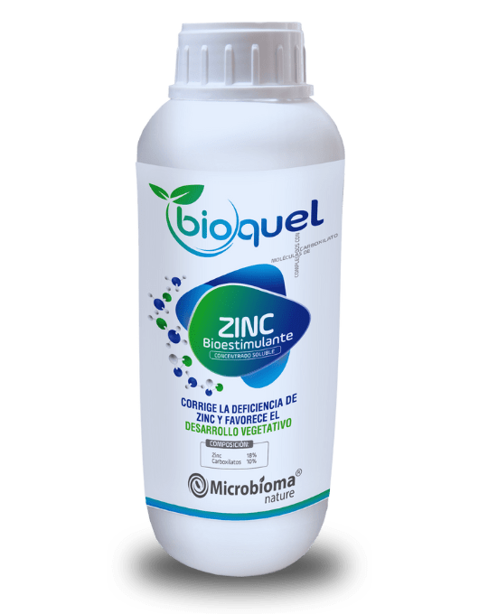 Bioquel Zinc, es un bioestimulante formulado por procesos de fermentación enzimática estabilizado con Zinc y complejados con moléculas de carboxilato.