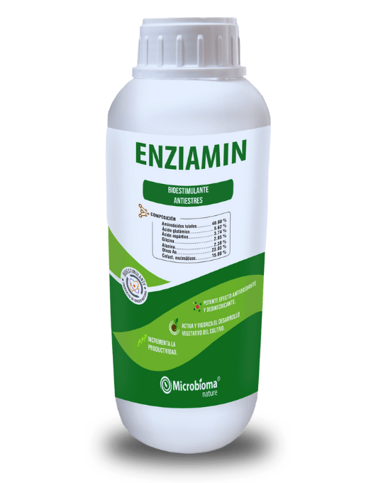 ENZIAMIN es un producto con un elevado contenido en aminoácidos totales yenriquecido con cofactores enzimáticos, especialmente diseñado como fertilizante foliar y radicular. Es un hidrolizado de proteínas en presentación liquida, que aporta a la planta los aminoácidos necesarios para un mayor desarrollo vegetativo y principalmente en épocas difíciles o en condiciones climáticas desfavorables.