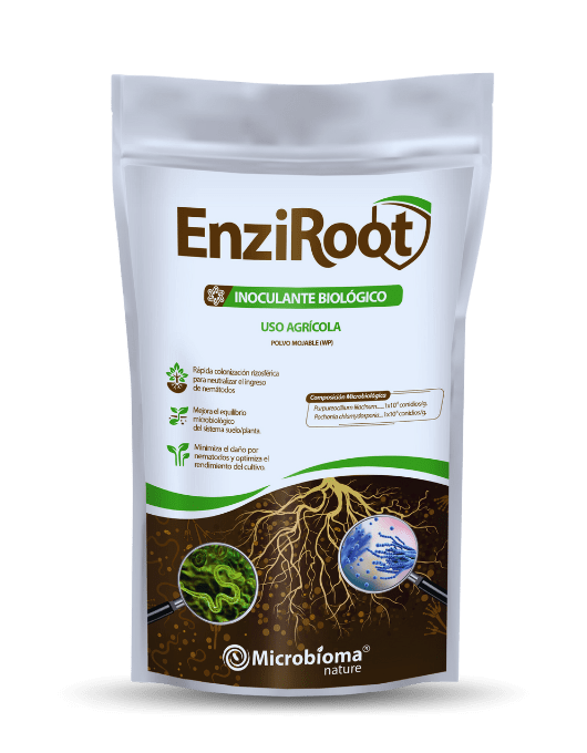 Enziroot es un inoculante microbiano que promueve el crecimiento vegetal y ayuda a minimizar los daños generados por la presencia de nematodos en los cultivos.