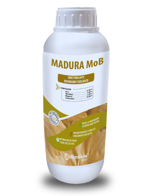 Madura MoB por su contenido de boro limita el movimiento de las auxinas evitando el crecimiento excesivo de los cultivos, acelerando la maduración.