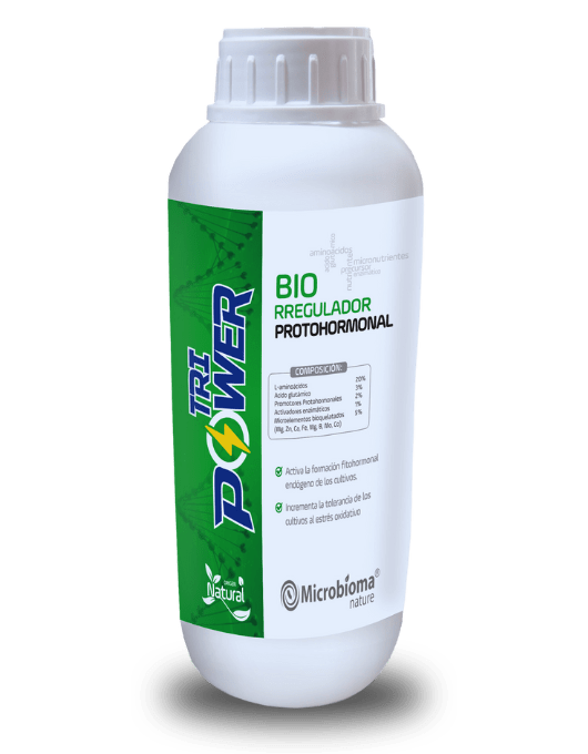 Tri-Power es un biorregulador protohormonal de origen natural, enriquecido con aminoácidos, macronutrientes y micronutrientes y ácido glutámico su formulación de alta tecnología y sus componentes hacen que actúe como precursor enzimático y hormonal de la planta obteniendo mejor desarrollo del área foliar y radicular, cuantificables en mejor calidad y mayor rendimiento a la cosecha.
